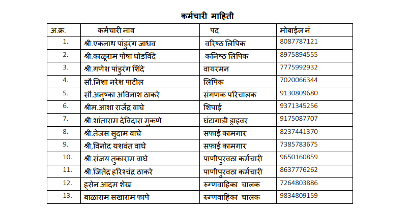 ग्रामपंचायत कर्मचारी तपशील व संपर्क माहिती