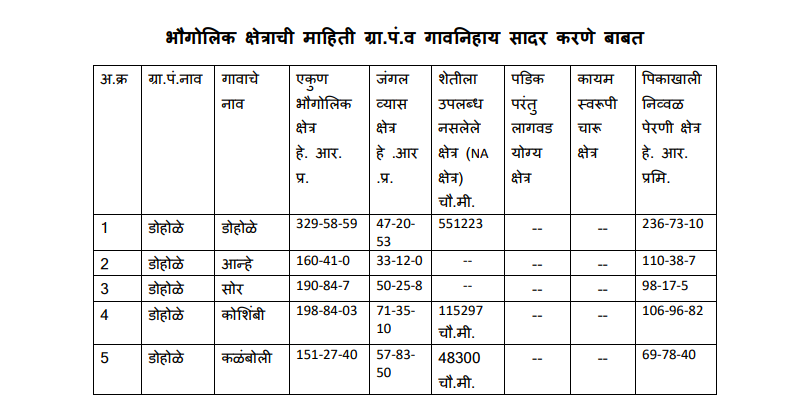 गावनिहाय भौगोलिक क्षेत्र व जमिनीचा तपशील
