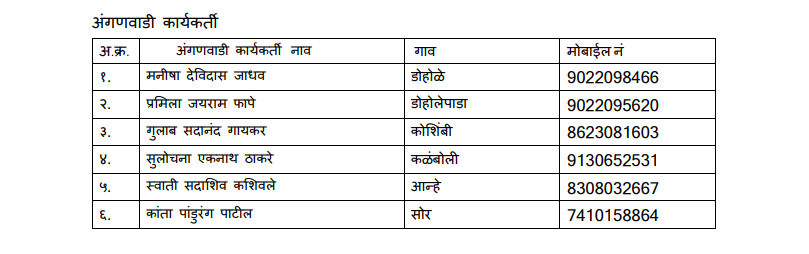 गावनिहाय अंगणवाडी कार्यकर्ती व संपर्क तपशील”